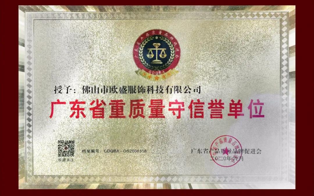歐盛服飾榮獲多項產(chǎn)品證書